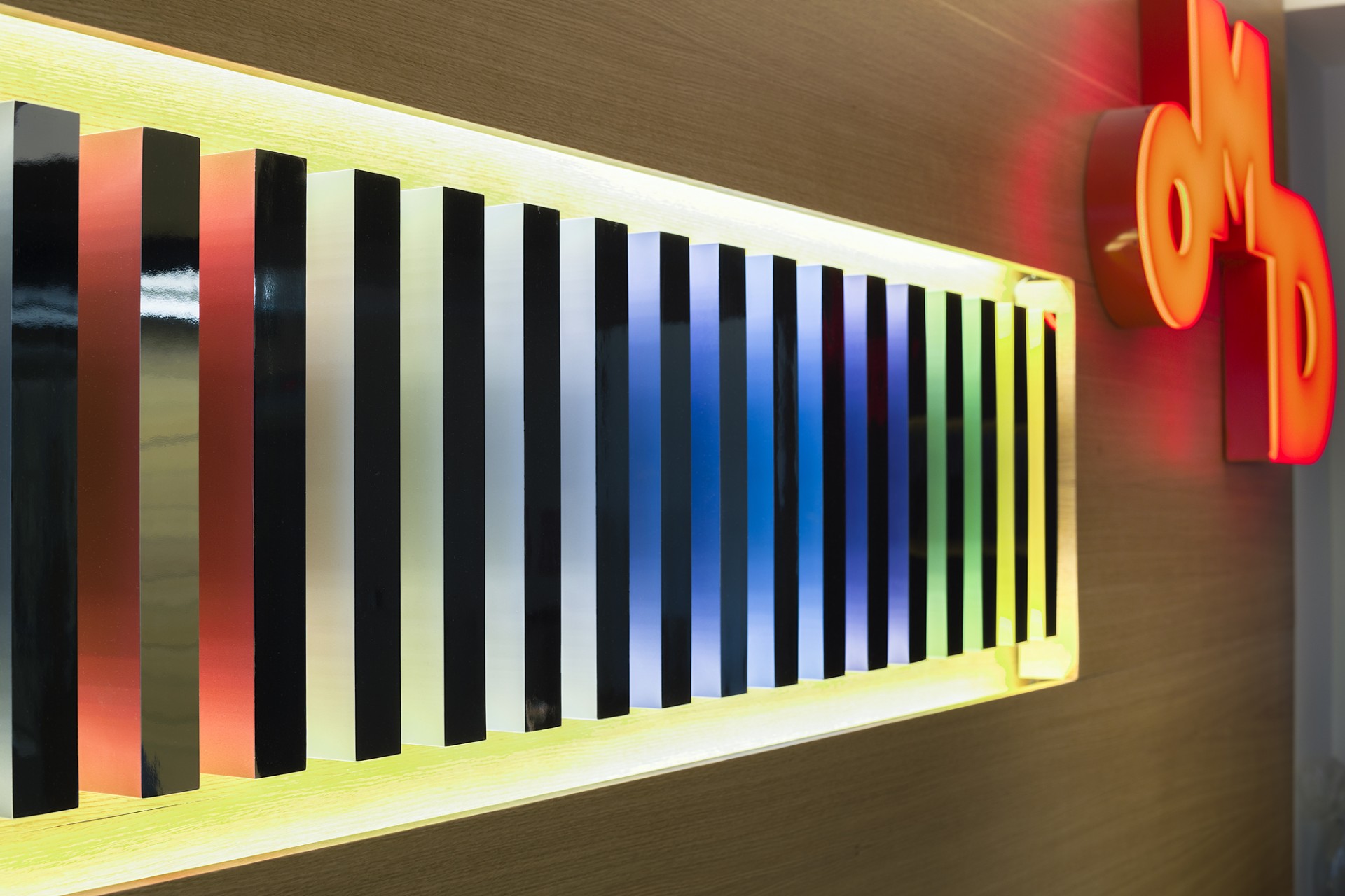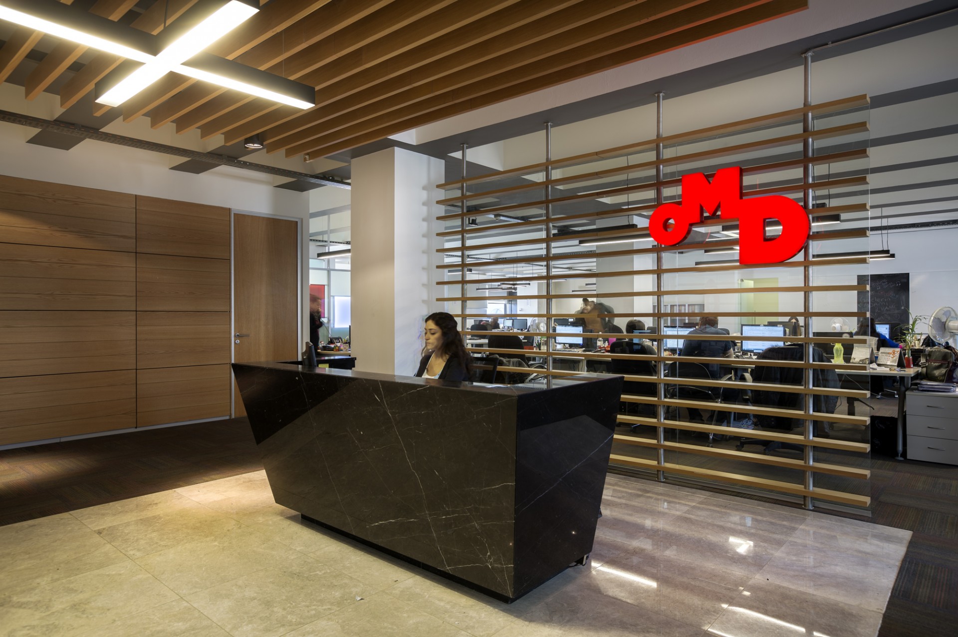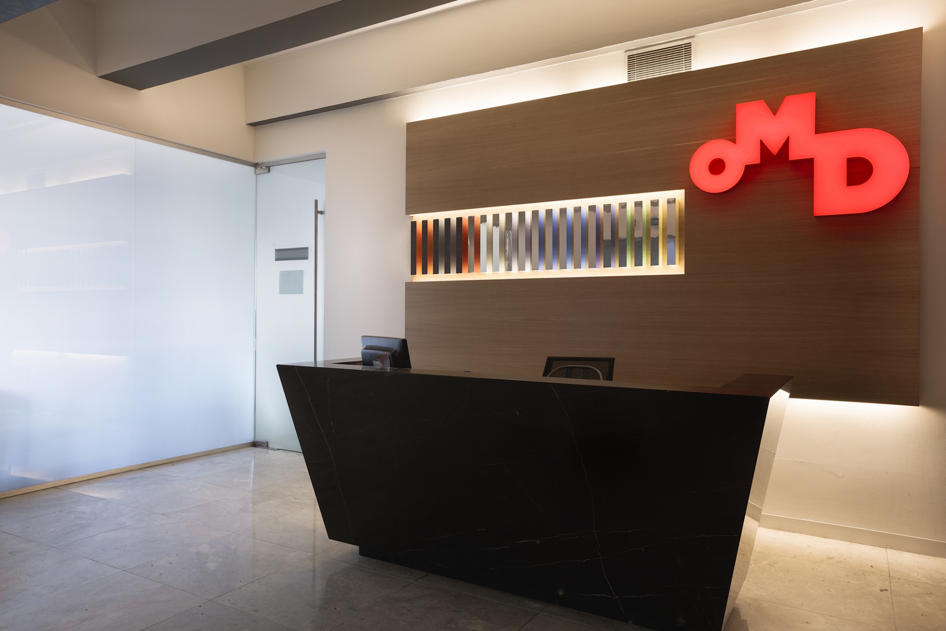 Tasarımda çalışma alanları ile ortak kullanım alanları farklı ele alınmıştır. Çalışma alanları için net ve yalın temalar seçilip her çalışanın aynı konfor düzeyinde çalışmasına olanak veren tasarımlar uygulanmıştır. Ortak alanlarda is OMD vizyonu daha geniş bir açı ile sunum imkânı sağlayan görsel tasarımlar yoğun olarak kullanılmıştır. Tasarım sürecinde firmanın kendi konsetpti de göz önünde bulundurulmuştur.