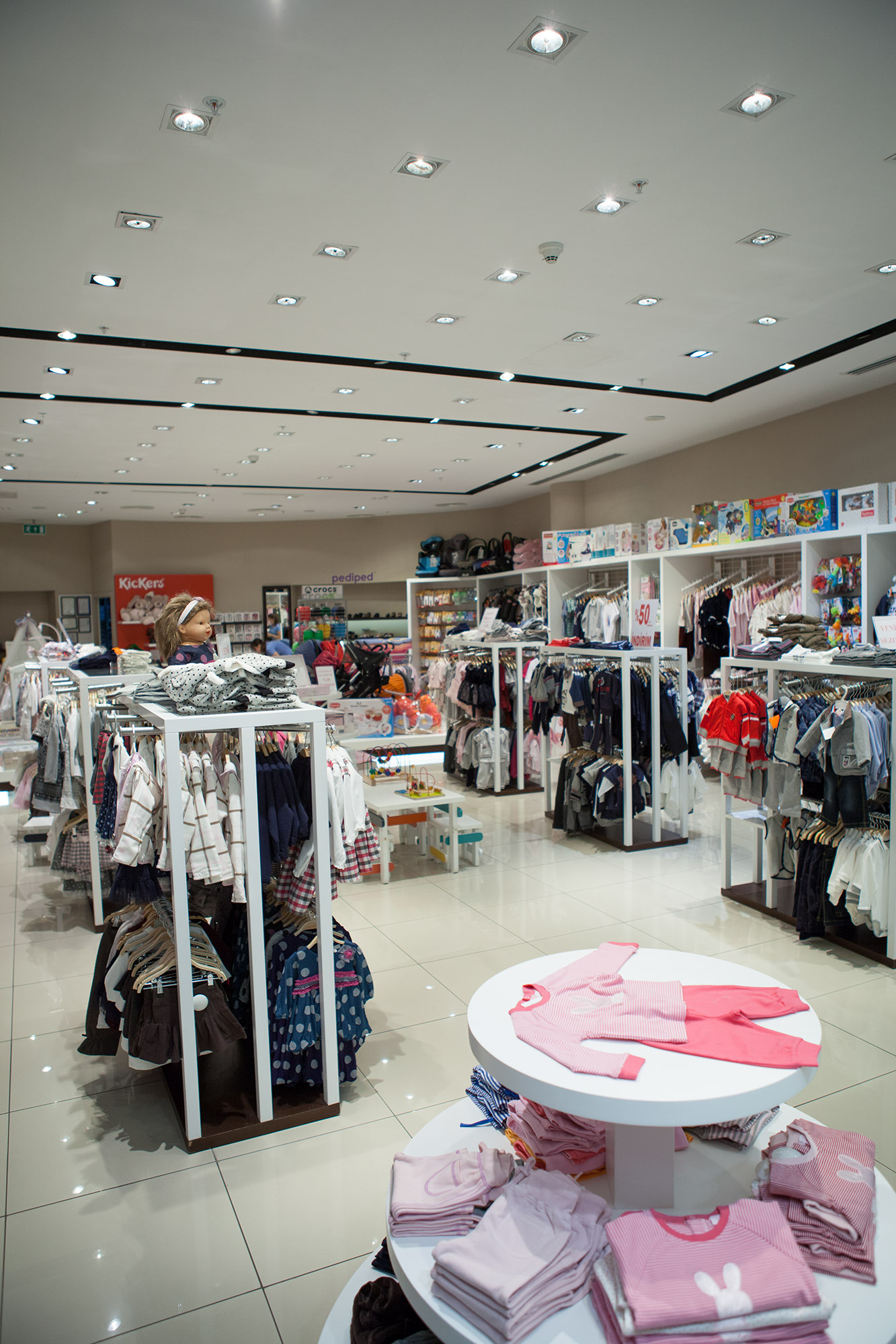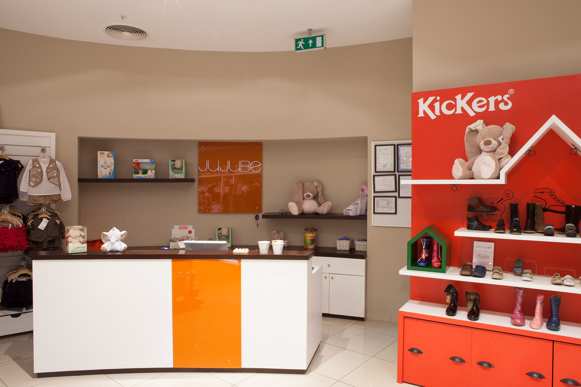 Gülören Tekstil’e ait 150 m2lik bir alana yayılan 0-6 yaş çocuk giyim mağazasıdır. Tasarım ilkesi olarak renkli ve geniş bir koleksiyona sahip olan firmanın, ürünlerini öne çıkaracak şekilde fonksiyonel teşhir üniteleri tasarlanmış ve yerine uygun formlarda ürün sergileme nişleri oluşturulmuştur. Firmanın kurumsal renkleri de tasarımda belirleyici bir etken olmuştur.